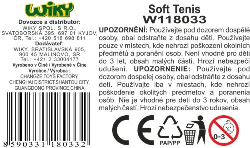 Soft tenis. Veľkosť rakety 43 cm. Obsahuje 2 rakety, loptička.