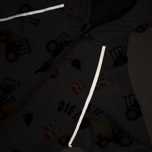 Nápaditý softshellový dojčenský overal New Baby. Overal je celopotlačený detským vzorom. Overal je vyrobený v Českej republike z kvalitného materiálu softshell. Materiál je hladký, elestický, mäkký a príjemný na dotyk. Do určitého stupňa je tiež vodeodolný, nenasakuje vodu a je odolný voči znečisteniu. Praktické zapínanie na zips po celej dĺžke veľmi uľahčí obliekanie a prebaľovanie. Zips je po celej dĺžke podšitý látkou, a tým je zamedzené prefukovaniu vetra na pokožku bábätka. Kombinéza má praktickú kapucňu, širšie pružné lemy na rukách a nohavičkách a celá vnútorná strana je zateplená krátko strihaným polarom, ktorý zvyšuje komfort nosenia a zaisťuje teplo. Na rukávoch sú našité reflexné paspulky. Softshellový overal je vhodný ako športové oblečenie, je odolný vetru a zároveň priedušný. Bábätko sa bude cítiť veľmi pohodlne a príjemne.<BR>Charakteristika softsellu:<BR>- tkanina sa skladá z 3 vrstiev<BR>- vonkajšia vrstva polyester<BR>- membrána<BR>- vnútorná vrstva, krátko strihaný polar<BR> Zloženie:<BR>- polyester 94%, polyamid 6%<BR>- gramáž 345 g/m2<BR>- vodný stĺpec 10 000 mm<BR>- priedušnosť 5000 g/m2/24h<BR>Upozornenie:<BR> Počas prania nepoužívať aviváž. Charakteristické vlastnosti softshellu by boli znehodnotené. Vyrobené v ČR. <BR>Snažíme sa vám výber správnej veľkosti čo najviac uľahčiť, preto pri fotografiách nájdete veľkostnú tabuľku.
