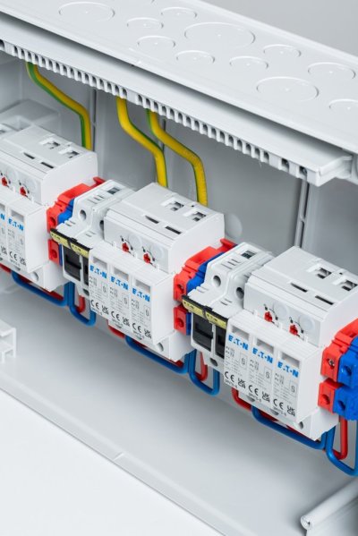 V rozvádzači je osadený zvodič prepätia DC s poistkovými odpínačmi vrátane gPV poistiek na istenie DC vstupu do striedača.