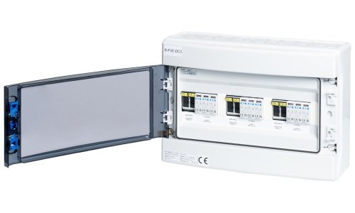 DC rozvádzač určený pre montáž na stenu, IP65/20 slúžiaci ako vstupný rozvádzač od fotovoltaických panelov (k striedaču) pre celé portfólio fotovoltaických elektrární.