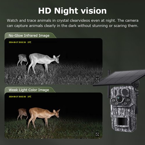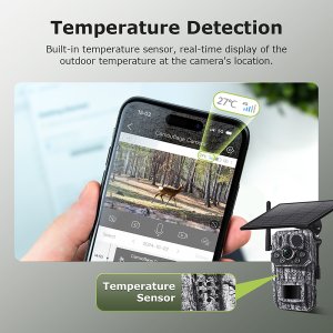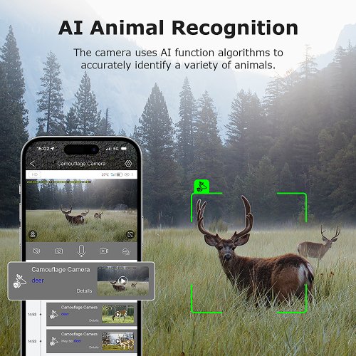 Kamera je vybavená PIR senzorom, ktorý spoľahlivo detekuje pohyb až na vzdialenosť 12 metrov. Navyše disponuje funkciou detekcie teploty a rozpoznávania zvierat s AI.