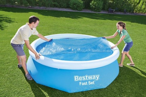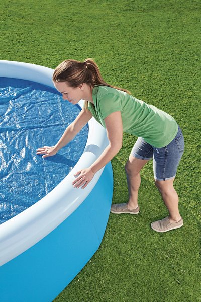 Vďaka tejto solárnej plachte na kruhový bazén zabránite vniknutiu nečistôt do vášho bazéna. Slnečná plachta využíva solárnu energiu na ohriatie vody v bazéne a bráni úniku tepla. Vhodné pre bazény Fast Set a Steel Pro Max s priemerom až 305 cm. Materiál: PE. Rozmer krycej solárnej plachty: Ø 289 cm. Rozmery balenia: 38 x 28 x 14 cm.