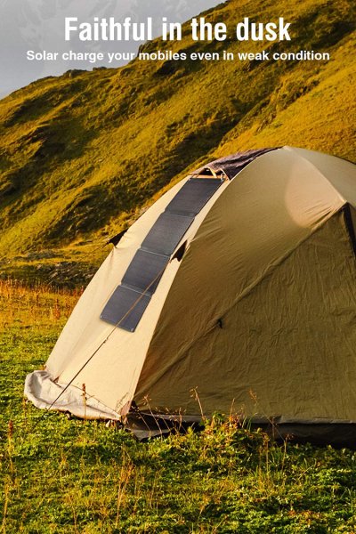 Solárny nabíjací panel pre všetky vaše elektronické zariadenia. Vďaka vysoko kvalitným monokryštalickým článkom s efektivitou min. 22%, dokáže premeniť slnečný svit na solárnu energiu oveľa efektívnejšie, než rad jeho konkurentov. Solárny panel VIKING 28W, je ideálny, malý a ľahký pomocník, kdekoľvek na vašich cestách. Už sa nebudete musieť spoliehať na el. zásuvky. Prichyťte ho počas cesty, pomocou hliníkových karabín, na váš batoh, bicykel, stan a môžete nabíjať powerbanku, čelovku, fotoaparát, kameru, baterku a akúkoľvek ďalšiu drobnú elektroniku na vašich výletoch, cestách, chalupe, pri vode, alebo v kempe.