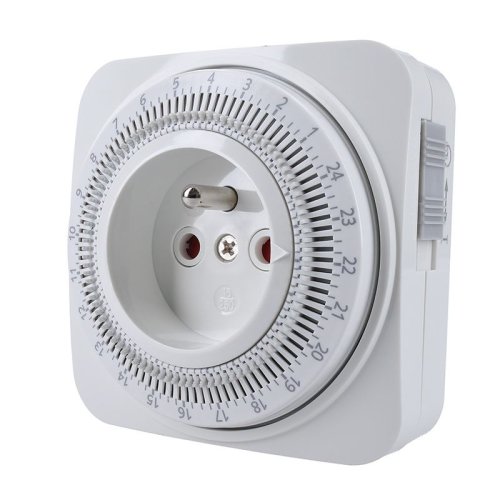 Mechanické spínacie hodiny pre nastavenie spínaného času elektrickej zásuvky. Rozpätie nastavenia 24 hodín, minimálny časový úsek je 15 minút. Detská poistka, prepínač na manuálne a automatické spínanie. Napájanie 230V/16A 50Hz. EAN 8592718012854