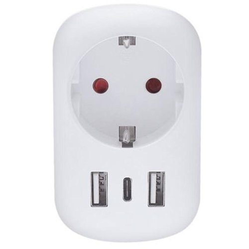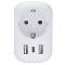 cestovný adaptér s uzemnením a vstavanou USB nabíjačkou výhodné spojenie dvoch zariadení v jednom pre obyvateľov Európy navštevujúce Anglicko a krajiny s UK štandardom, zásuvky typu G Schuko uzemnenie zásuvky, použiteľné pre univerzálne vidlice typu E/F vhodné aj pre spotrebiče s neuzemnenou 2-kolíkovou vidlicou typu C zásuvka 2 max. 13A, max. 2990W/230V 2x USB-A + 1x USB-C, DC 5V - max. 2,4A, max. 12W adaptér nemení napätie ani iné elektrické parametre farba: biela