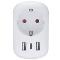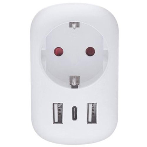 cestovný adaptér s uzemnením a vstavanou USB nabíjačkou výhodné spojenie dvoch zariadení v jednom pre obyvateľov Európy navštevujúce USA a krajiny s US štandardom, zásuvky typu B Schuko uzemnenie zásuvky, použiteľné pre univerzálne vidlice typu E/F vhodné aj pre spotrebiče s neuzemnenou 2-kolíkovou vidlicou typu C zásuvka s detskými. 15A, max. 1800W/120V, max. 3450W / 230V 2x USB-A + 1x USB-C, DC 5V - max. 2,4A, max. 12W adaptér nemení napätie ani iné elektrické parametre farba: biela