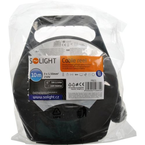 Solight PB21 predlžovací prívod na bubne, 4 zásuvky, čierny, 10m