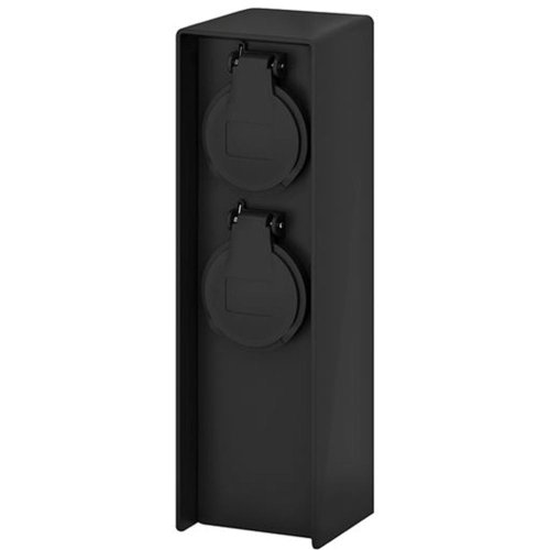 Špecifikácia plastový elektrický rozvodný stĺpik prívod elektrickej energie do vonkajších priestorov, záhrad a sadov 2 zásuvky max. 16A, 3680W, detské poistky a samouzatvárateľné krytky proti vlhkosti a prachu svorkovnice s uzemnením pre pripojenie prívodného kábla vo vnútri stĺpika základňa s montážnymi otvormi do pevných povrchov farba: čierna trieda ochrany: IP44 rozmery: 7,0 x 6,8 x 23cm