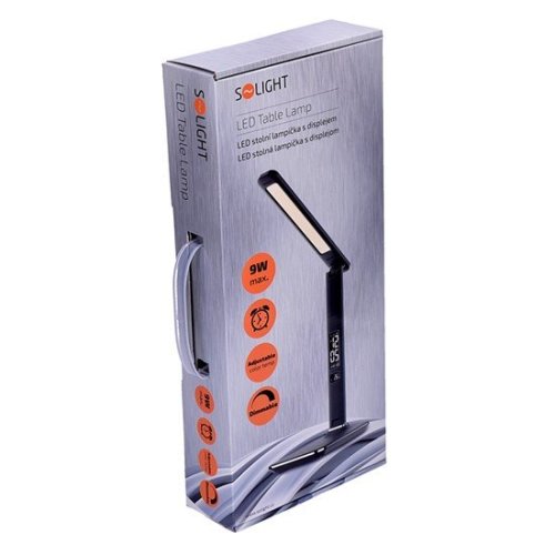Solight WO45-B LED stolná lampička s displejom, 9W, voľba teploty svetla, koža, čierna