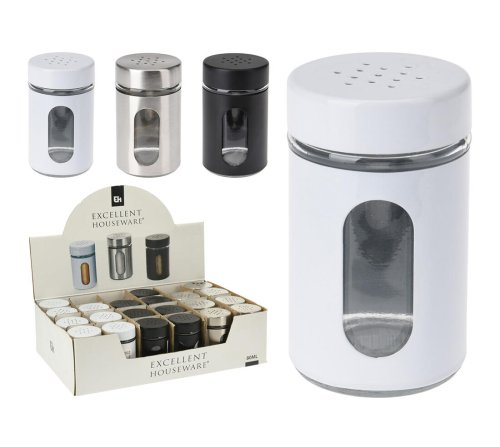 Soľnička / korenička 94 ml, kov / sklo, mix farieb. objem: 94 ml priemer 4,5 cm výška: 8 cm materiál: kov, sklo mix farieb: biela, nerez, čierna Praktická nádobka na soľ alebo korenie, ktorá sa hodí na každý …