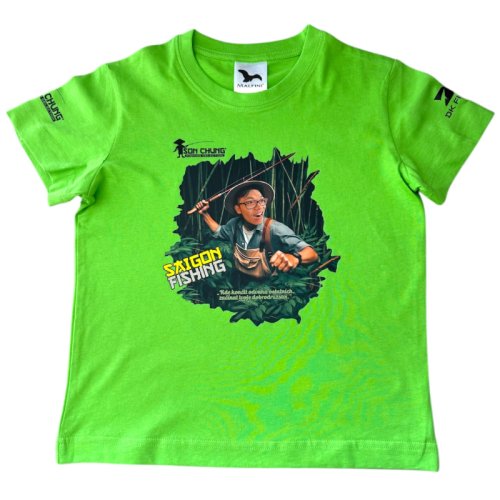 Tričko s potlačou Šona, na ramenách s logami ŠON CHUNG FISHING SELECTION a DK FISHING.