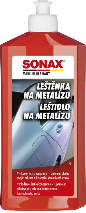 SONAX leštenka určená pre všetky metalické laky. Brúsne mikročastice čistia ošetrované plochy a odstraňujú jemné nerovnosti. Vysoko kvalitná zložka karnaubského vosku trvalo chráni vozidlo pred poveternostnými vplyvmi.