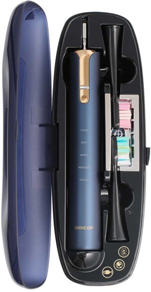 Sonická zubná kefka SOC 4110BL je navrhnutá pre efektívne, šetrné a komfortné každodenné čistenie zubov. Ponúka 5 prednastavených programov na čistenie i regeneráciu a dosahuje až 40 000 sterov za minútu, čo zaručuje výrazne vyššiu účinnosť pri odstraňovaní plaku v porovnaní s bežným čistením. Vďaka špeciálne nastavenému kmitaniu sa zároveň stará o zdravie vašich ďasien. Šikovný časovač s technológiou Quadpacer rozdeľuje čistenie na štyri rovnomerné časové úseky pre optimálne výsledky. Kefka je vybavená LED indikátorom stavu batérie a ergonomicky tvarovanou rukoväťou pre pohodlné držanie. Spotreba energie je mimoriadne nízka a vodeodolné prevedenie s krytím IPX7 umožňuje použitie aj vo vlhkom prostredí. Batéria vydrží až 45 dní na jedno nabitie pri bežnom používaní. Výmenné hlavice zaistia dlhodobú hygienu a vďaka celosvetovej kompatibilite napätia 100–240 V si kefku ľahko dobijete kdekoľvek na svete.