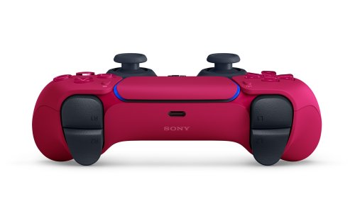 Hraj štýlovo s bezdrôtovým ovládačom DualSense vo zvodne červenej farbe. Preč sú línie, ktoré sa niesli od pôvodného PlayStationu. Rozloženie jednotlivých prvkov ale zostáva verné predchodcom. Obe analógové páčky sú v jednom rade v spodnej časti, nad nimi je vľavo smerový kríž s oddelenými tlačidlami a napravo štvorica hlavných tlačidiel.