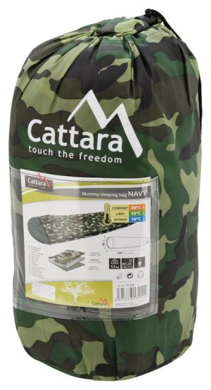 Cattara Navy 10 ° C predstavuje múmiový spací vak s univerzálnym využitím a vysokým komfortom vďaka svojim rozmerom 230 x 80 / 55 cm . Vyniká tiež svojimi malými rozmermi v balení 18 x 37 cm , vďaka čomu je veľmi ľahko prenosný . Hodí sa tak na stanovanie, vodácke výpravy, výlety do prírody alebo treking a skvele náhradí aj prikrývku v karavanoch, kempoch či na chalupe.