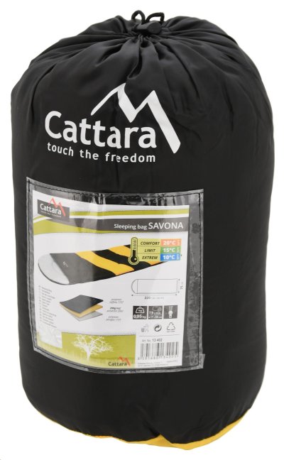 Cattara Savona 10°C predstavuje dekový spací vak s univerzálnym využitím a vysokým komfortom vďaka svojim rozmerom 230 x 75 cm . Vyniká tiež svojimi malými rozmermi v balení 17 x 35 cm , vďaka čomu je veľmi ľahko prenosný . Hodí sa tak na stanovanie, vodácke výpravy, výlety do prírody alebo treking a skvele náhradí aj prikrývku v karavanoch, kempoch či na chalupe. Dokonale kopíruje telo a má tak najlepšie tepelnoizolačné vlastnosti a je vybavený sťahovacou kapucňou chrániacou hlavu.