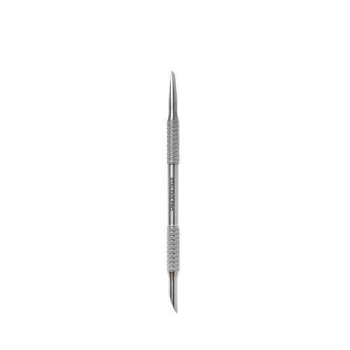 Obojstranná špachtľa na manikúru na zatlačenie kožičky a čistenie nechtu. Špeciálne drážky na povrchu rukoväte zaisťujú pohodlné uchopenie prstami a zabraňujú skĺznutiu nástroja pri práci.