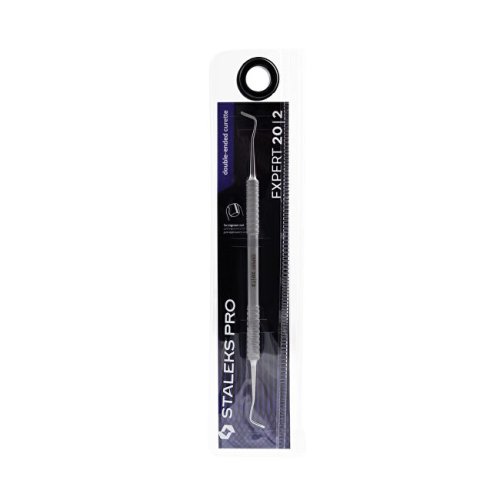 Obojstranná špachtľa na pedikúru s brúsenou kyretou. Špeciálne drážky na povrchu rukoväte zaisťujú pohodlné uchopenie prstami a zabraňujú skĺznutiu nástroja pri práci.