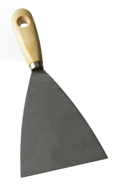 Nerezová špachtľa s drevenou rukoväťou sa využíva na nanášanie a roztieranie stavebnej sadry alebo iných tmeliacich hmôt či na odstraňovanie starej maľby a náterov.