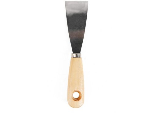 Nerezová špachtľa s drevenou rukoväťou sa využíva na nanášanie a roztieranie stavebnej sadry alebo iných tmeliacich hmôt či na odstraňovanie starej maľby a náterov.