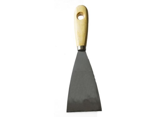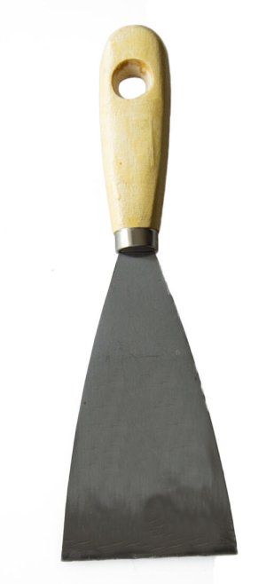 Nerezová špachtľa s drevenou rukoväťou sa využíva na nanášanie a roztieranie stavebnej sadry alebo iných tmeliacich hmôt či na odstraňovanie starej maľby a náterov.