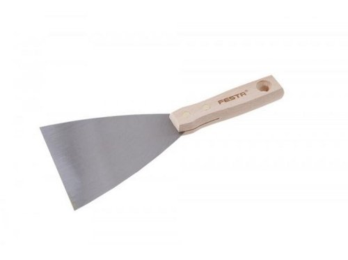Maliarska stierka (špachtľa) s brúseným oceľovým britom as drevenou nitovanou rukoväťou. Maliarske stierky sa používajú na zapravovanie dier, zoškrabanie prebytočného materiálu a pod. Šírka čepele 120 mm. EAN 8590804049869