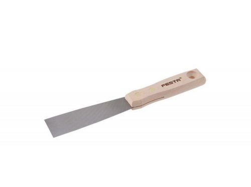Maliarska stierka (špachtľa) s brúseným oceľovým britom as drevenou nitovanou rukoväťou. Maliarske stierky sa používajú na zapravovanie dier, zoškrabanie prebytočného materiálu a pod. Šírka britu 40 mm. EAN 8590804049814