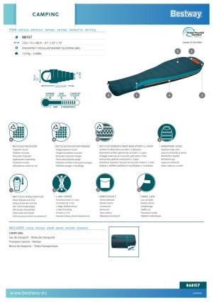 Dizajn spacáku je premyslený nielen z hľadiska funkčnosti, ale aj estetiky, kde kontrastné vnútorné a vonkajšie farby vytvárajú príjemný vizuálny efekt. Spací vak je vhodný pre široké spektrum užívateľov, ktorí hľadajú kombináciu tepelnej izolácie, pohodlia a udržateľnosti v jednom produkte. Vďaka certifikácii GRS (Global Recycled Standard) je tento výrobok zárukou ekologicky šetrnej produkcie, ktorá minimalizuje dopad na životné prostredie. Celkovo je Bestway Ridgepro múmie spací vak vhodný pre všetkých, ktorí chcú počas svojich výletov spať v teple a komforte, a zároveň dbajú na ekologickú zodpovednosť.
