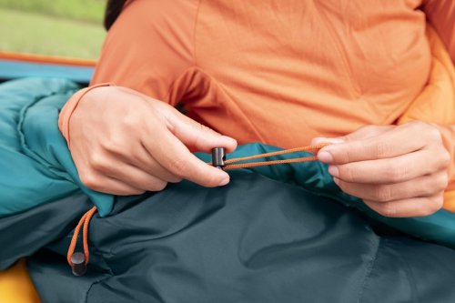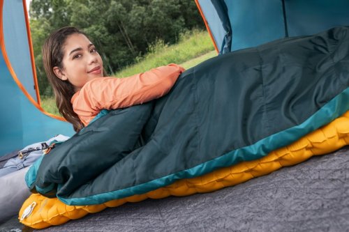 Spací vak Bestway Ridgepro múmie je určený pre outdoorových nadšencov a kempovanie v chladnejších podmienkach. Jeho rozmery činia 230 cm na dĺžku, 74 cm v najširšej časti pri hlave a 48 cm v oblasti nôh, čo poskytuje dostatok priestoru pre pohodlný spánok. Tento múmie štýlový spací vak je navrhnutý tak, aby efektívne izoloval teplo a minimalizoval únik tepla vďaka svojmu tvaru, ktorý obopína telo a má zúžený koniec pri nohách. Farba spacáku je tmavo zelená s akcentmi v odtieni petrolejovej a vnútro je kontrastne oranžové, čo zároveň uľahčuje orientáciu vo vnútri.