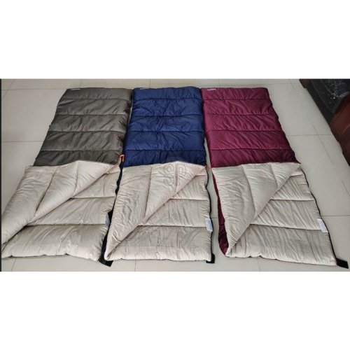 spací vak dekový 190x75cm, vonkajší materiál 190t polyester, podšívka tr85x57 100% polyester, výplň 300g/m2, rovné prešitie, normálne vrece s potlačou a logom, nylonový zips s 2 ťahačkami, plastový štítok na zips svetlo šedá, logo na spacom vaku a vreci, pre 0 - +10 stupňov celzia, 3 rôzne farby: tmavo červená, modrá a šedá, každá s visačkou a štítkom na šitie.