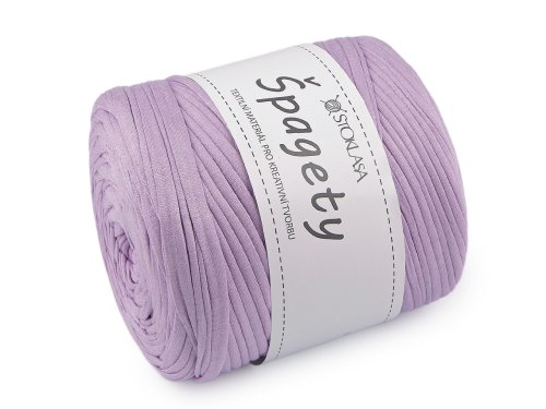 Špagetovú priadzu tvoria narezané prúžky látky z recyklovanej bavlny. Priadza je mierne elastická. Využijete ju na pletenie a háčkovanie koberčekov, diek, tašiek, šál, košíkov, batohov, obliečky na vankúše a pod. Je príjemná na dotyk, vhodná aj na pletenie rukami. >Veľkosť ihlíc: 9 Veľkosť háčika: 8 Varianty sú v základných farbách v rôznych odtieňoch (tmavšie, svetlejšie, melírované).