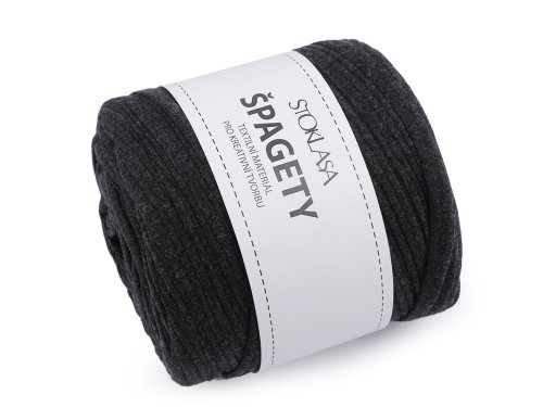 Špagetovú priadzu tvoria narezané prúžky látky z recyklovanej bavlny. Priadza je mierne elastická. Využijete ju na pletenie a háčkovanie koberčekov, diek, tašiek, šál, košíkov, batohov, obliečiek na vankúše a pod. Je príjemná na dotyk, vhodná aj na pletenie rukami. >Veľkosť ihlíc: 9 Veľkosť háčika: 8 Varianty sú v základných farbách v rôznych odtieňoch (tmavšie, svetlejšie, melírované).