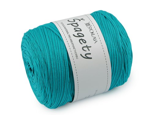 Špagetovú priadzu tvoria narezané prúžky látky z recyklovanej bavlny. Priadza je mierne elastická. Využijete ju na pletenie a háčkovanie koberčekov, diek, tašiek, šál, košíkov, batohov, obliečky na vankúše a pod. Je príjemná na dotyk, vhodná aj na pletenie rukami. >Veľkosť ihlíc: 9 Veľkosť háčika: 8 Varianty sú v základných farbách v rôznych odtieňoch (tmavšie, svetlejšie, melírované).