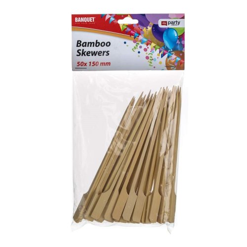 Špajle bambus 15 cm, grilovací s úchytom (50 ks). dĺžka: 15 cm materiál: bambus balenie: 50 ks Bambusová napichovátka - špíz BANQUET.