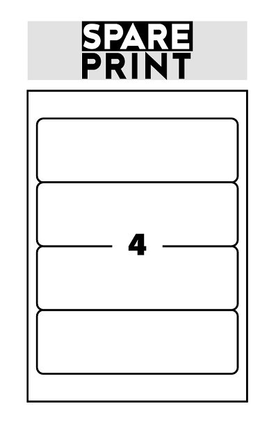 Label, biela, akrylové, bezdrevný, 192mmx61mm, etikety so zaoblenými rohmi, pomocný rozmer 210mm x 297mm, krabica 100 x 4 etikiet