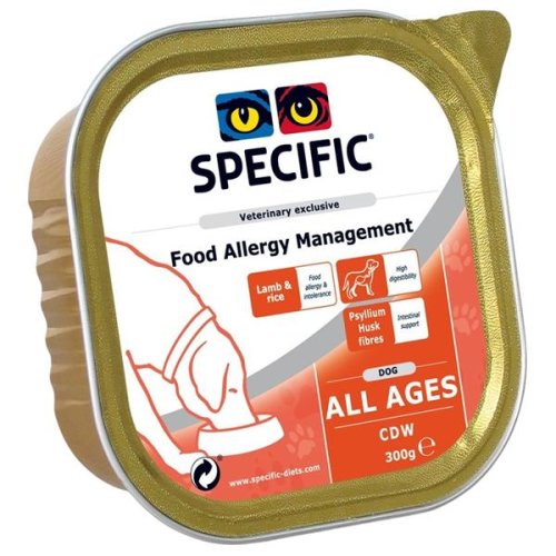 SPECIFIC™ CDW Food Allergy Management je kompletná a vyvážená diéta pre dospelých psov, ktorá obsahuje iba veľmi obmedzený počet surovín. Použitie tejto diéty je pre majiteľa pohodlnejšie v porovnaní s prípravou domácej hypoalergénnej diéty. Aby sa zabránilo vzniku nežiaducich reakcií na krmivo, je nevyhnutné podávanie iba hypoalergénnej diéty s absolútnym vylúčením ostatných potravín. Pre výživu pacientov s klinickými príznakmi hnačky z tenkého čreva sa odporúča rozdeliť celkovú kŕmnu dávku na 3 – 5 porcií za deň. Exokrinná pankreatická insuficiencia sa prejavuje zníženou sekréciou pankreatických tráviacich enzýmov. Diéta SPECIFIC™ CDW Food Allergy Management je ľahko stráviteľná a preto ideálna pre pacientov s exokrinnou pankreatickou insuficienciou. Aj napriek tomu sa odporúča podávať krmivo spolu s preparátmi pankreatických enzýmov.