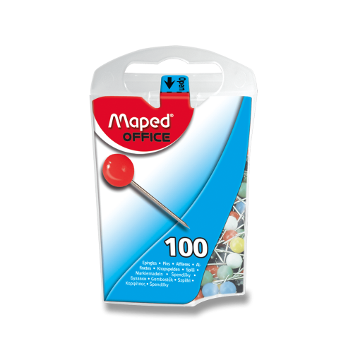 Tabuľové špendlíky, oceľový hrot. Plastová hlavička priemer 5 mm, 100 ks. Mix farieb.