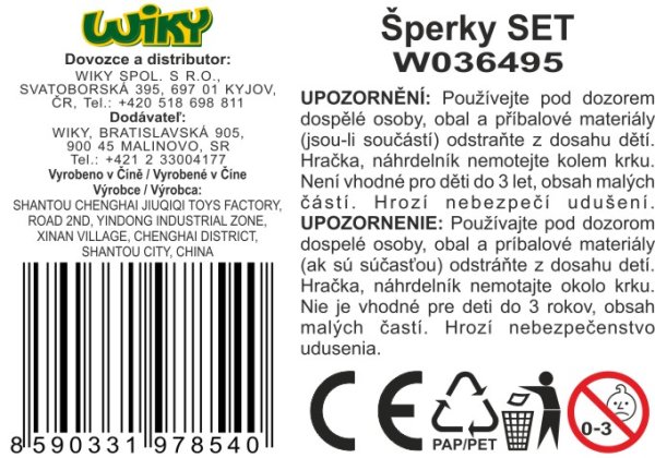 Šperky set. Balenie obsahuje náhrdelník a 2 náušnice.