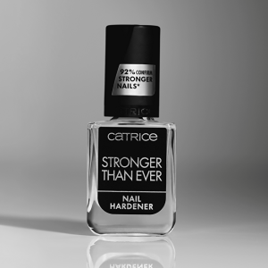 Spevňujúci lak na nechty Catrice Stronger Than Ever s výťažkom zo semien zeleru a kyselinou glykolovou pomáha znížiť lámavosť, krehkosť i štiepenie nechtov. Rýchloschnúca, transparentná textúra s lesklým efektom zanecháva nechty okamžite upravené a chránené. Je možné ho používať samostatne ako posilňujúcu starostlivosť alebo ako podkladový lak pod farebný lak na nechty. Už po dvoch týždňoch pravidelného používania pôsobia nechty tvrdšie a odolnejšie.