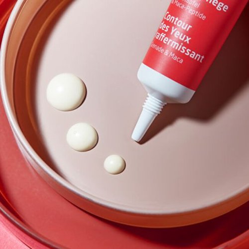 Spevňujúci očný krém s obsahom organického oleja z granátového jablka a peptidov z organického maca koreňa, ktoré aktivujú regeneráciu pokožky a viditeľne zjemňujú vrásky. Vďaka extraktu zo zeleného čaju a kofeínu zosvetľuje tmavé kruhy pod očami a redukuje opuchy.