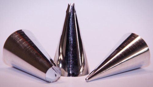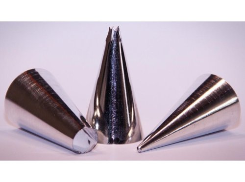 Balenie obsahuje 3 ks zdobiacich špičiek. Ideálny pomocník na zdobenie tort a dezertov. Špičky sa tiež hodia na pečenie a plnenie zákuskov a cukroviniek. Vyrobené z pocínovaného plechu. Pripravené na použitie s bavlneným cukrárskym vreckom. Vrecko nie je súčasťou balenia.