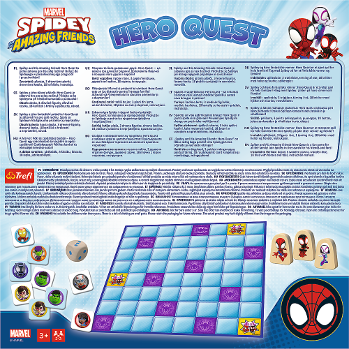 Spidey a jeho úžasní priatelia: Hero Quest je zábavná hra pre celú rodinu. Pridajte sa k Spideymu pri hľadaní kamarátov a zloduchov. Počet hráčov: 2-3 Vek: 3+ Obsah balenia: hracia doska drevená kocka 18 kartičiek s hrdinami a zbabelcami návod