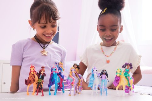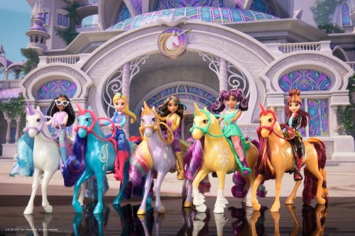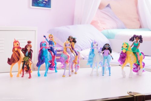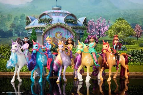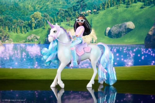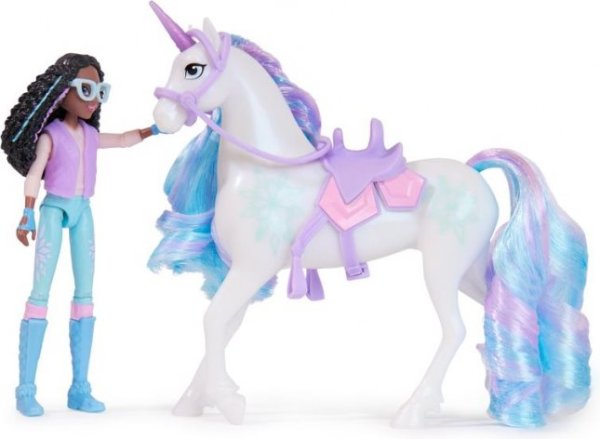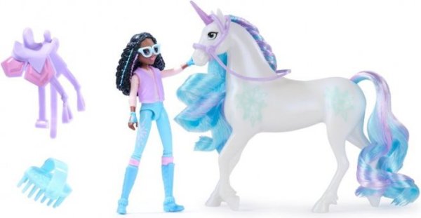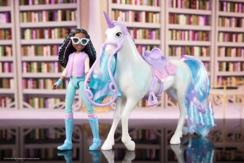 sada inšpirovaná animovaným seriálom od NETFLIXu a bestsellerovou knižnou sériou bábika má detailne prepracované rysy a pohyblivé kĺby hrivu a chvost jednorožca je možné rozčesávať priloženou kefou uzda a sedlo sú odnímateľné výška bábiky: cca 11,5 cm; výška jednorožca: cca 13 cm