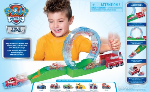 Uhas oheň a zachráň deň s Marshallom z Tlapkové Patroly a jeho Hasičskú dráhou pre 1:55 Kovová autíčka Tlapkové patroly (predávaná samostatne).