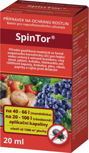 Spintor je prírodný postrekový insekticíd vo forme suzpenzního koncentrátu pre riedenie vodou určený na ochranu zemiakov, viniča, jabloní, karfiolu, hlávkovej kapusty, ružičkového kelu, brokolica, póru, cibule, papriky a paradajok proti škodcom. Spintor je požerový a kontaktný insekticíd. Príjem účinnej látky škodcami nastáva príjmom potravy aj priamym kontaktom s látkou. Pôsobenie účinnej látky spočíva v ovplyvňovaní aktivity neurónov hmyzích jedincov. Účinok nastáva už po niekoľkých hodinách, následne dochádza k úhynu hmyzích škodcov. Spintor účinkuje na škodcov z radu motýľov, chrobákov, dvojkrídlových a třásnokřídlých, nepôsobia na savý hmyz (vošky).