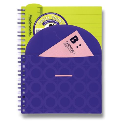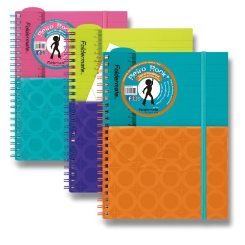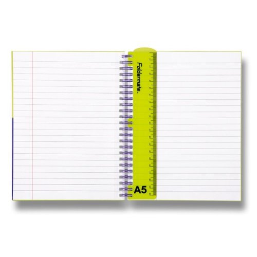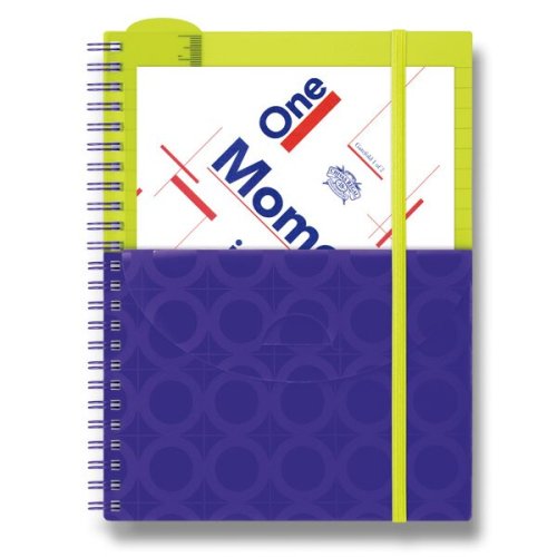 Krúžkový blok s bočnou dvojitou špirálou z tvrdeného polypropylénu. Praktické uzatváranie na gumičku, predné vrecko a vyberateľné pravítko, 20 cm. Papier 80 g/m2. Formát: A5, 80 listov, linajkový
