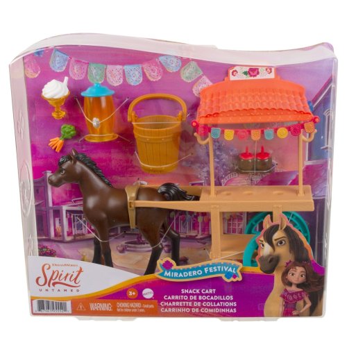 Buďte súčasťou všetkého toho priateľstva, statočnosti a dobrodružstvo s animovaným filmom Spirit od DreamWorks! Sortiment stánkov Spirit Festival Stand ponúka výber medzi festivalovým stánkom na zmrzlinu, ktorý je dodávaný s otočnými kolieskami, plachtou a príslušenstvom na výrobu kornútov so zmrzlinou as malým poníkom; alebo stánkom na čistenie obuvi, ktorý je dodávaný s otočnými kolieskami, plachtou a doplnky pre naleštené topánky as malým poníkom. Každý sa predáva samostatne, v závislosti od dostupnosti. Farby a dekorácie sa môžu líšiť.