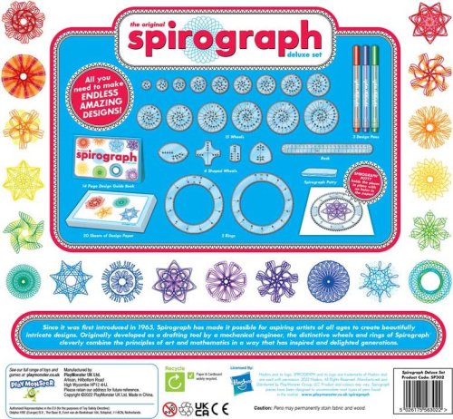 Kreatívna spirographová sada s ktorou dokážete vytvoriť nespočet geometrických mandál. Balenie obsahuje rysovaciu súpravu, ktorá rozvíja detskú tvorivosť, kombinačné schopnosti a jemnú motoriku. S pomocou šablón sa deti naučia rysovať a tvoriť najrôznejšie vzory, ktoré potom môžu pokojne aj vyfarbiť. Balenie obsahuje: