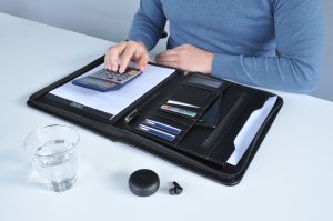 - Spisovka A4 z umelej kože so zipsom - Uzatvárateľná na zips - 1 vnútorné zásuvné vrecko na dokumenty formátu A4 alebo tabliet do veľkosti 10" - 3 vrecká na dokumenty A5 - 8 vreciek na karty alebo vizitky - 1 …