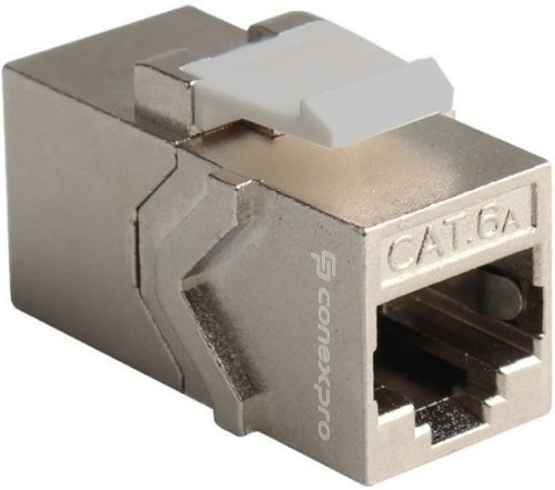 Spojka Conexpro STP 8/8 RJ45 / Cat.6A v striebornom prevedení je praktické riešenie pre spojenie dvoch sieťových káblov . Podporuje káble kategórie CAT6A a nižšie a zaisťuje spoľahlivý prenos vďaka tienenému prevedeniu.